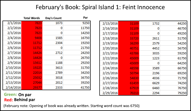 That's partially why I fell behind and never caught up. I was slacking, for sure, as I missed seven whole days of writing period, which is a whole quarter of the month, but days where I got well under the 2500 word goal was because I was just there tyring to figure out how to write a scene in prose that was designed for the visuals of a game, and try to decide whether I should describe something or leave it out. Spiral Island the game, way back when it started as a RPG Maker 95 project had three main bosses that it started with before any story was written just placed on the open map. Those remain, written into the game's script, but here in the novelization the only critical elment was what lead up to the first so the first was skipped, the second was skipped entirely without mention, and so only the last got any description. Other boss battles from the game's script I skip entirely, skip over with a scene break mid-chapter, or abberviate because they have actual dialogue going on in them. It was actually easiest to write the chapter that fit the newly introduced plot, overall, because making it up from scratch meant I only minimaly had to make sure it fit with everything else, and didn't have to worry about trying to go from a script and scene directions into prose writing. I'm going to write a couple more post-mortem articles with chapter samples about how this all, so that will come later this month.